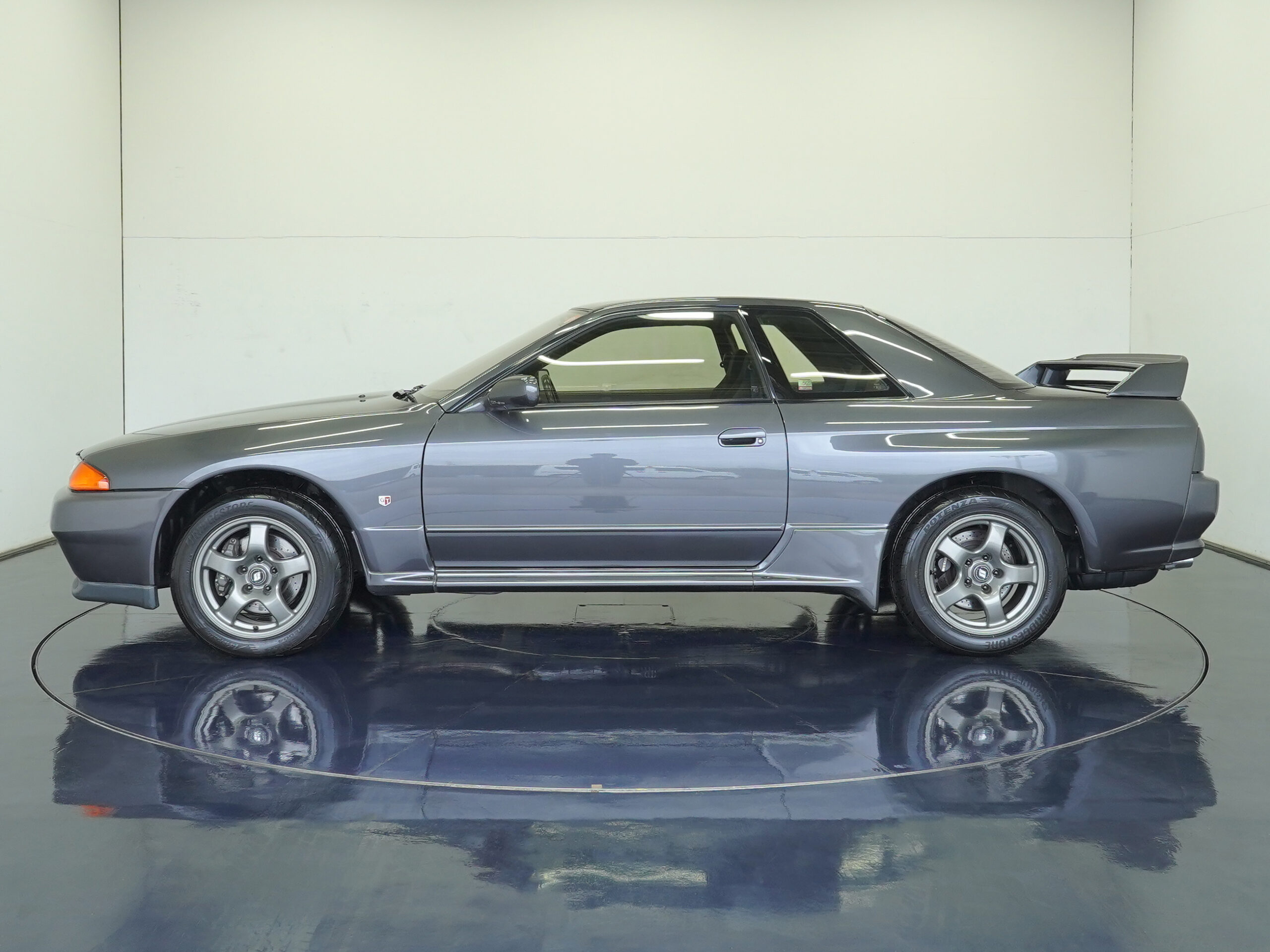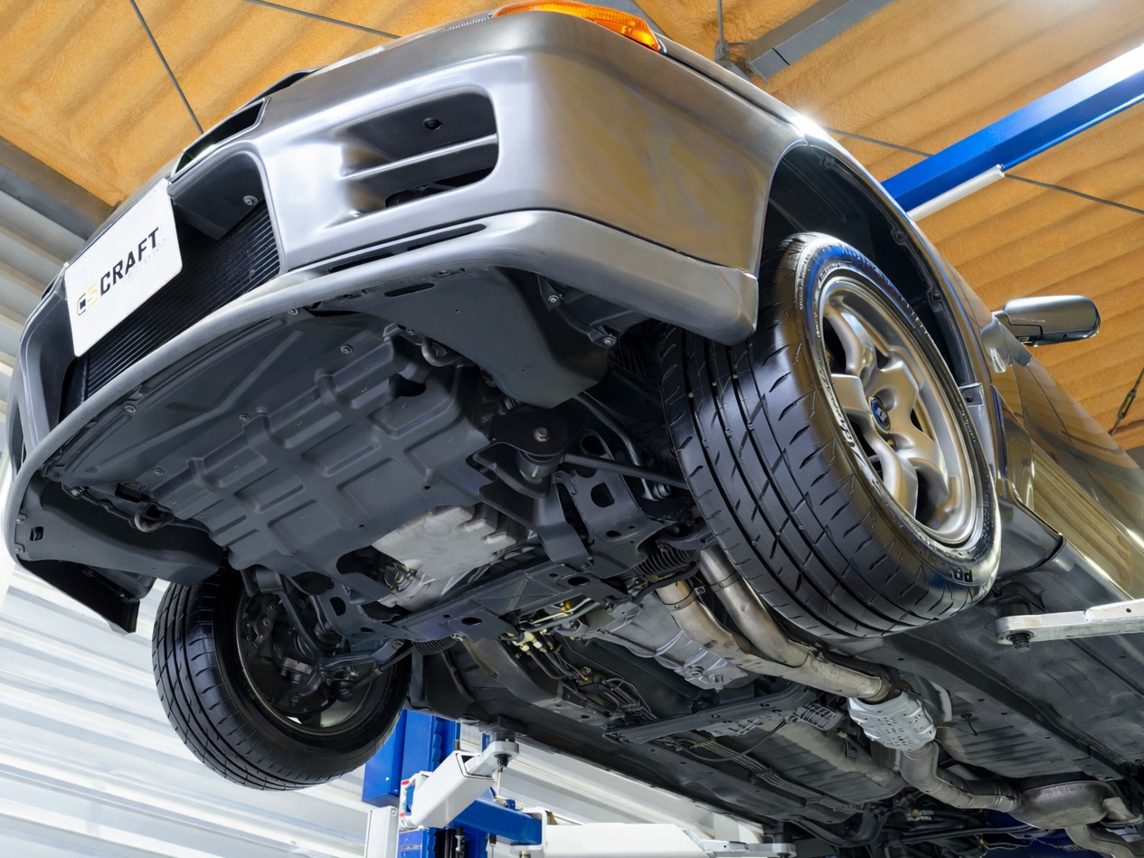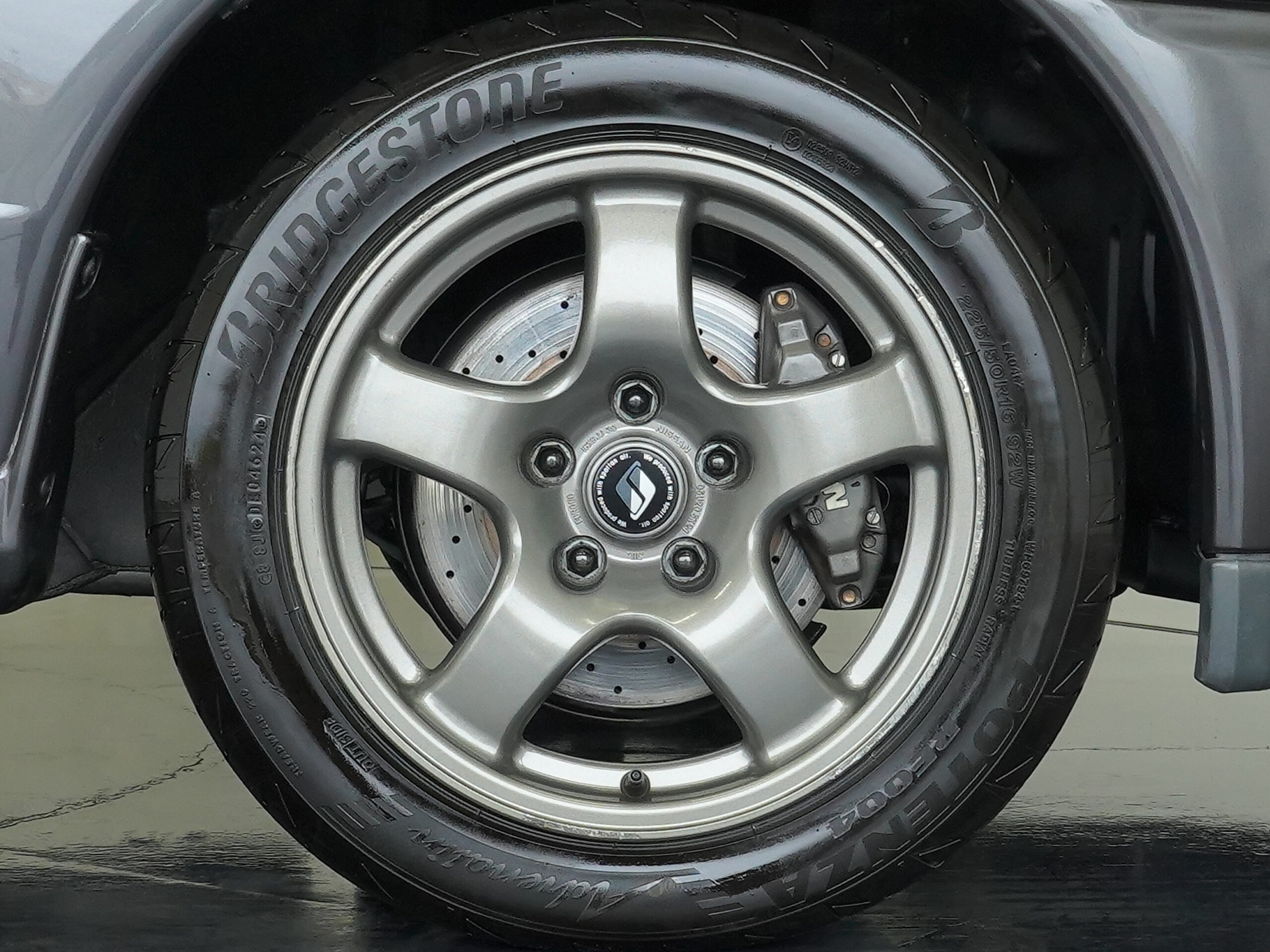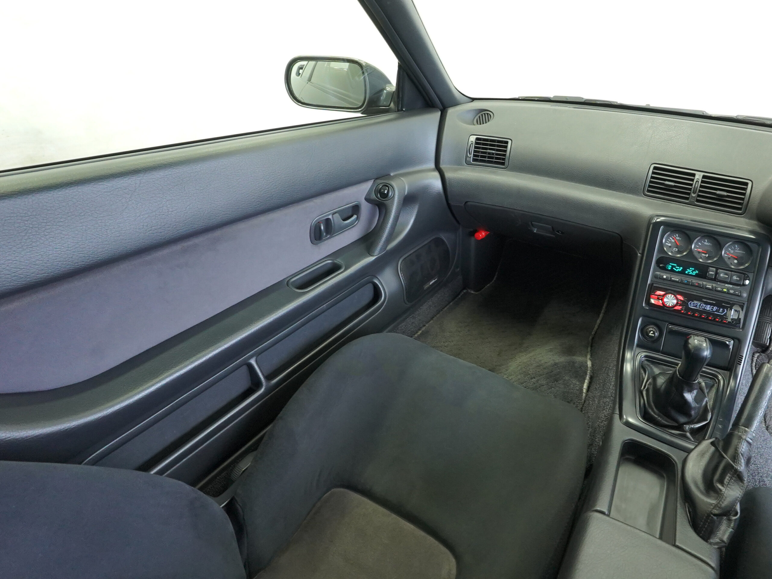 | Interior | Tilt & telescopic steering/Genuine leather-wrapped sports type steering wheel/Genuine leather-wrapped shift knob/Genuine leather-wrapped parking brake lever/central door lock/front torque meter/voltmeter/oil pressure gauge/boost meter/oil temperature gauge/monoform bucket seat/ genuine floor mat |